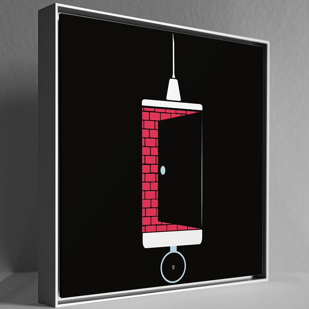 Art Boxen von dailysign werden auf Anfrage als hochfeine, kleine Bildskulptur aus satiniertem Aluminium auf Alu-Dibond in der Größe 21 x 21 x 2,6 cm gefertigt. Je nach Motiv in Schwarz oder Silber, gerahmt.